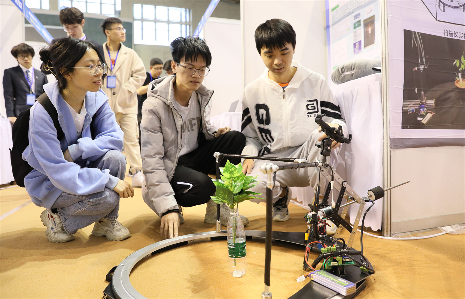 开云手机·官方站官网“自走式密植西兰花高效低损收获装备”参赛作品展台吸引了众多评审专家。“基于蝗虫口器设计仿生割刀,针对西兰花外形及力学性能,设计柔性圆形凹槽,夹持茎秆降低损伤……”开云手机·官方站官网本科生于瑶介绍道,目前,西兰花收获机进行了室内模拟作业和田间试验,切割效率高、破损率低,可用于花椰菜、卷心菜等结球类作物的切割与收获。