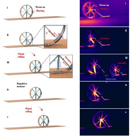 图2. Feynman车轮软体机器人持续运动机制